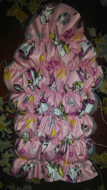 Теперь юбочка с оборочками. Собрала нижнюю деталь на нитку.