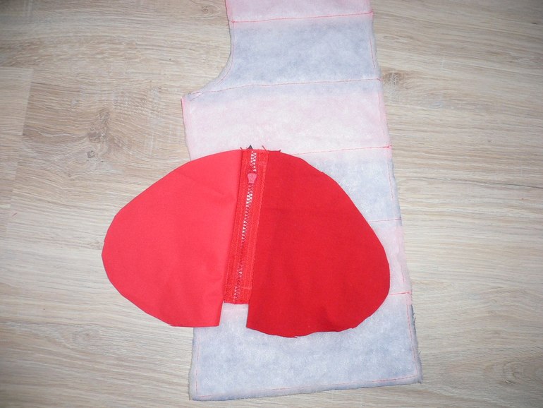 - срезала лишнюю ткань по краям от молнии и намечаю линию шва,