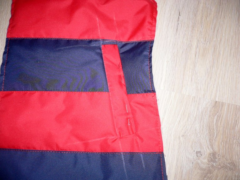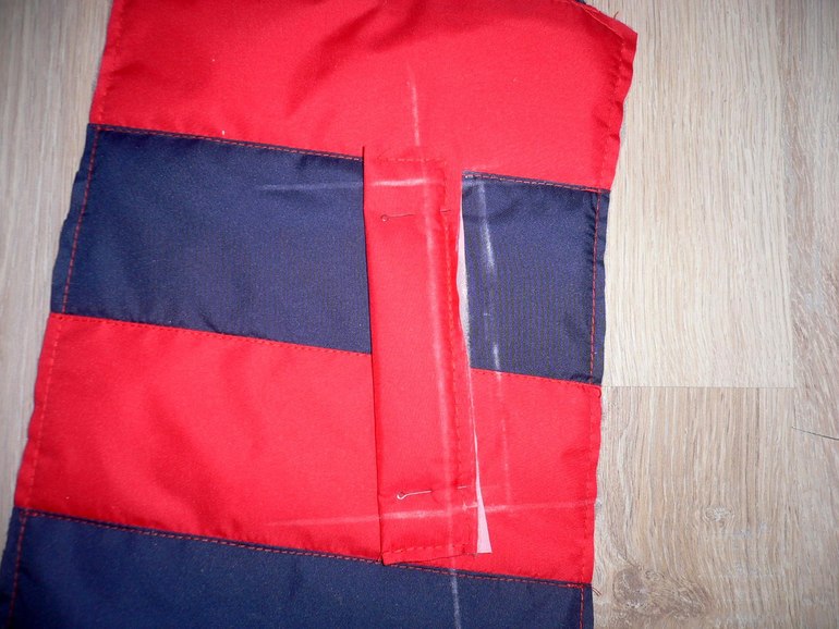 - пришиваю по бокам молнии полоски плащевки. Это я сделала, для того чтобы карман смотрелся аккуратнее и пошив был легче, за счет того, что увеличилась ширина припуска на шов
