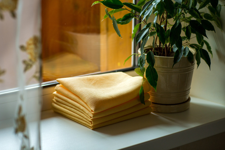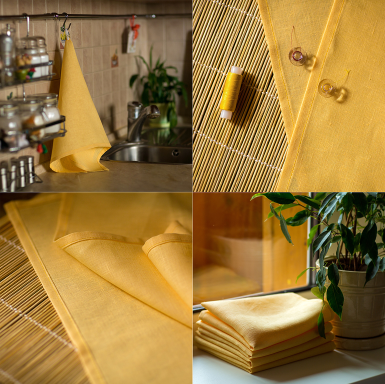 Занесло меня тут как-то на прошлой неделе в магазин тканей и угораздило купить льняной кусочек совершенно спонтанно. Очень уж он мне приглянулся в качестве нескольких полотенечек на кухне. И уж не передать мне вам, как ждала я, когда смогу попробовать шить, уже неся в сумочке ту ткань… да и дома потом…