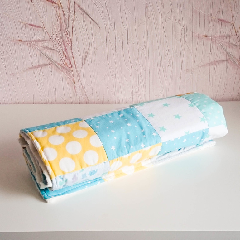 Ожидаем его ближе к маю, поэтому одеялко совсем тоненькое. Но утеплитель все-же совсем не убирала, май маю рознь.