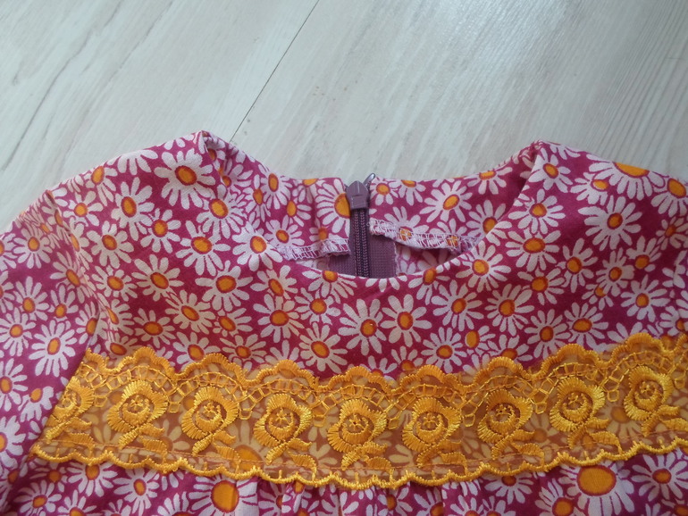 И, наконец, сарафан! Мучила его я долго. Начала шить ещё на старом оверлоке. Переплевалась вся. Дождалась своего жучка и на нём уже заканчивала. Выкройка с ОТТО 1/2013, модель 13, рост 86. Ткань из советских запасов.