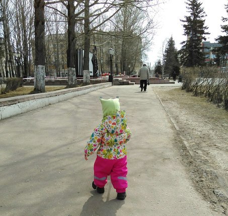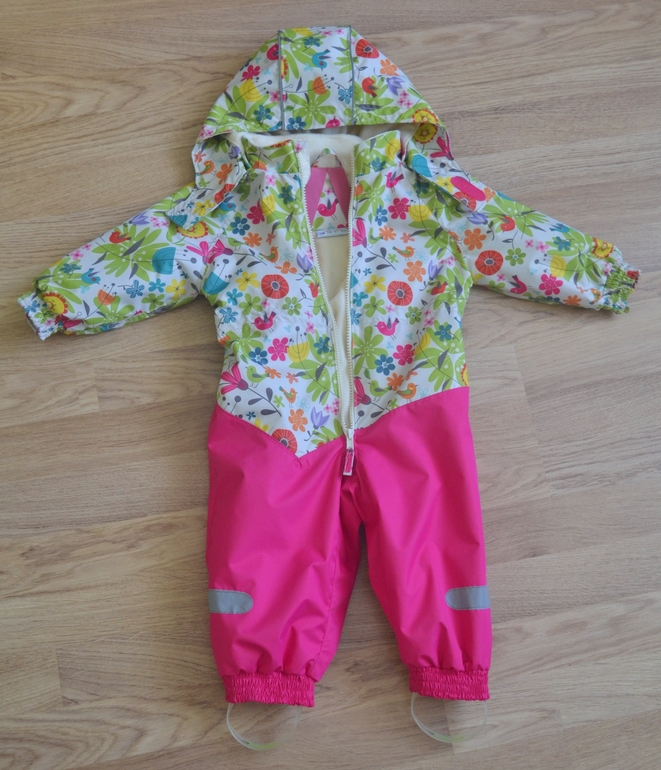 Деми комбинезон 86 размера, по выкройке Оттобре 4/2014 всем известного комбинезона с моими изменениями - убрала ширину, удлинила рукава и штанины, переделала капюшон в двушовный