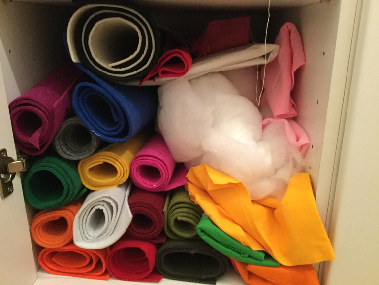 Тканей много - три коробки пластиковые, полка огромная в старинном буфете, по пакетам... Еще существенная куча недошивов