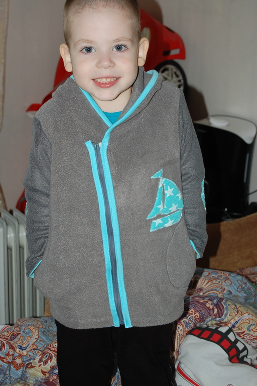 Давно была идея сшить толстовку из флиса,ну вот руки дошли... Толстовка косуха из оттобре 6-2013. Аппликация и заплатки-капитоний.