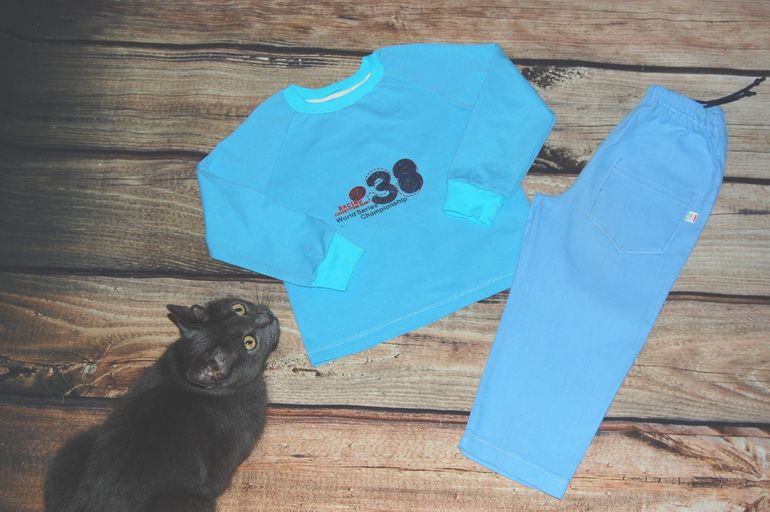 Термотрансферы лежат,а время идет,нужно куда-то их лепить. Лонгслив с руковом реглан из кулирки, на горловине и манжетах интерлок,термотрансфер с цифрами. выкройка по мотивам толстовки из отто 1-2014. Брюки эти я уже показывала,просто сфоткала их,как компаньон. Котик пришел на фотосессию