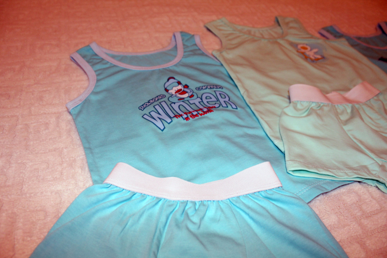 Майки-трусы) Когда ребенок идет в сад, их много не бывает! Выкройки из оттобре, правда номера уже не помню, весь год по ним шью)) Бирюзовая кулирка х/б, светлый ментол- кулирка с лайкрой (очень тонкая как фуллайкра).