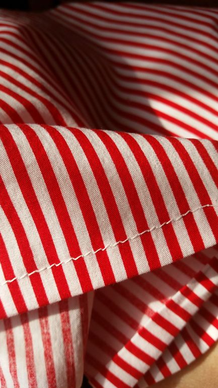 А моя горизонтально- челночная машинка делает идеально ровные строчки.