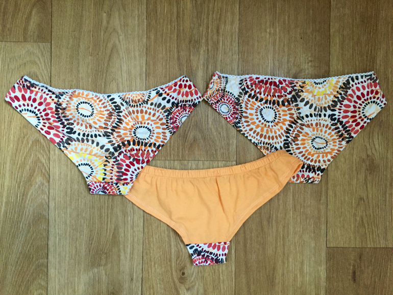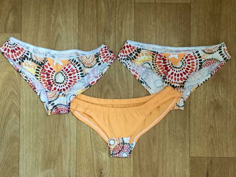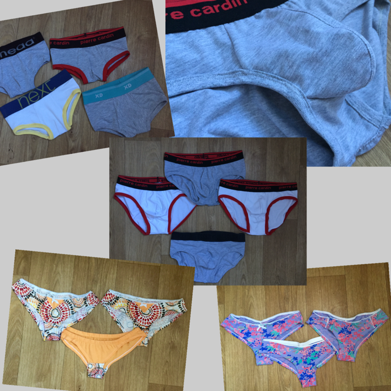Вот на себе съэкономила. Всю эту кучку кроме белых пошила из трех топиков БУшных, даже на двух трусах резинки толстые споротые с топика)) мне эти топики отдали на переделки, так что я потратилась только на резинки. Всего 9 трусов вышло дармовых🙃, здесь не все показала.