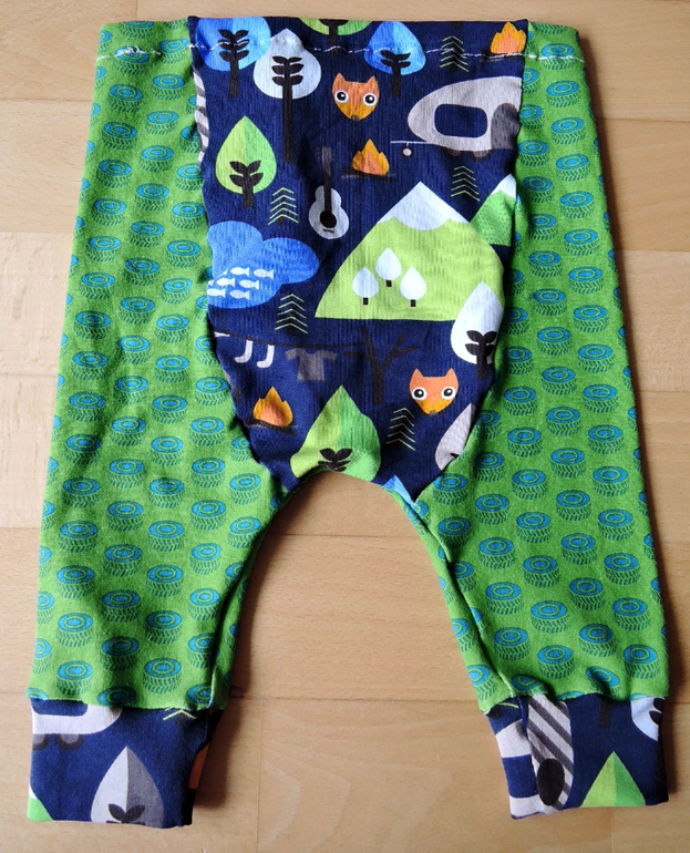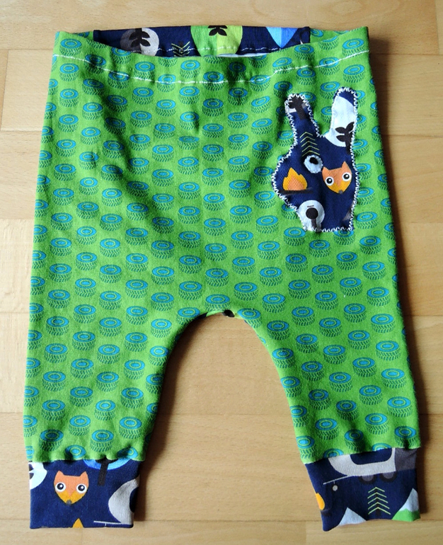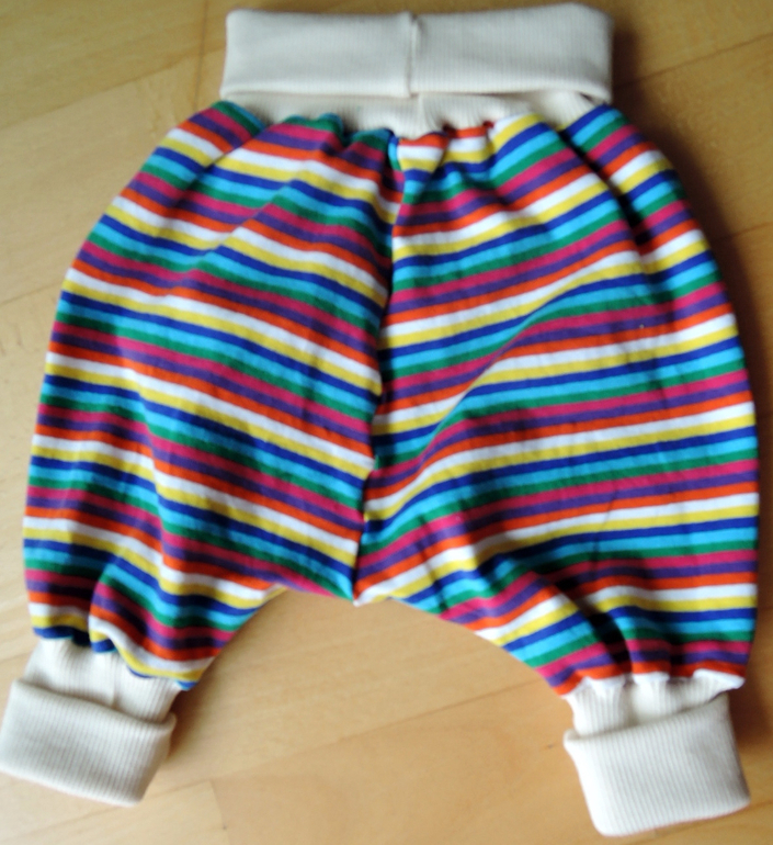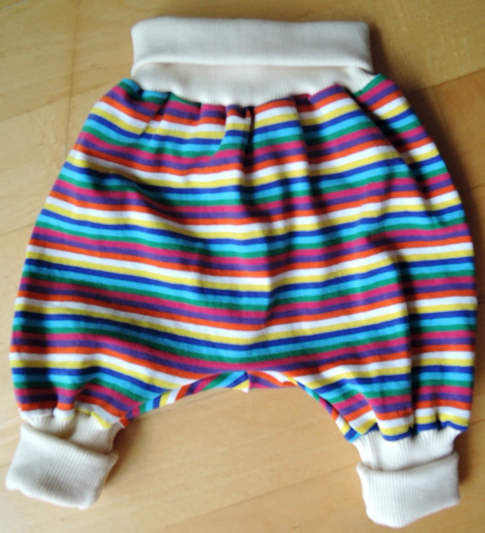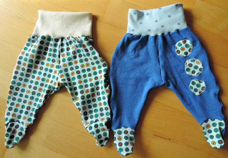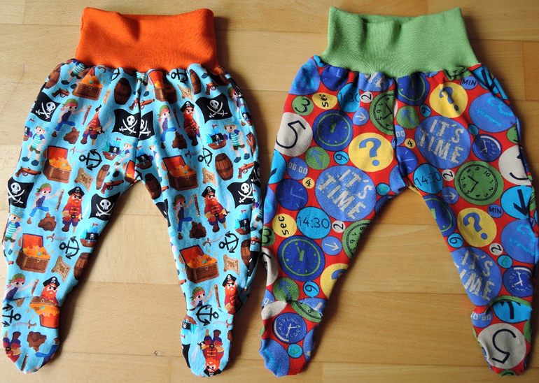 Без ножки на 62 размер я сшила одни из Ottobre 1/2012. Очень мне понравилось их шить, такая быстрая модель... Ждите в размерах побольше еще несколько)) Резинку я еще не вставляла в пояс. Материал -трикотаж.