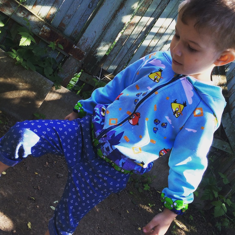 Кофточка интерлок,задумывалась,как пижамная,но сынуля полюбил её за мягкость),сказал будет ее так носить,а пижаму сшить ему другую приказал!)Спасибо всем,кто досмотрел до конца!) все выкройки брала из Оттобре,тканьки с осинки.