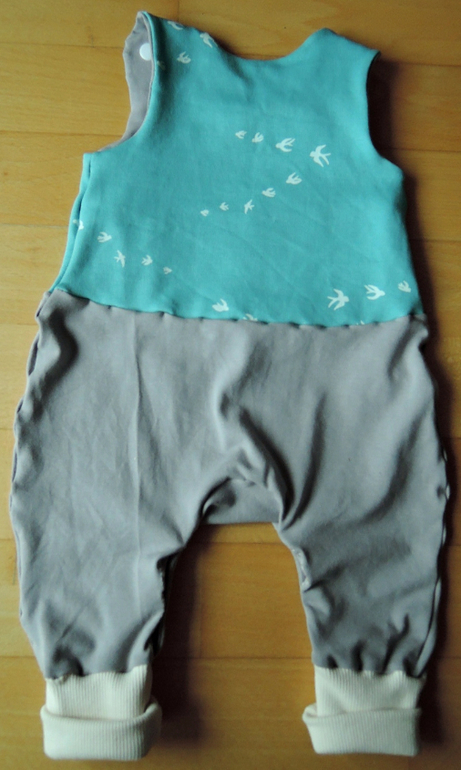 А вот этот предмет детской одежды вызывает у меня лично сомнения, не знаю, будем ли мы его носить. Но практиковаться в шитье мне нравится, поэтому если и нет - передарится.Выкройка и мастер-класс на немецком, брала , там стоит надпись Mikey Schnittmuster+Anleitung, тыкать туда.
