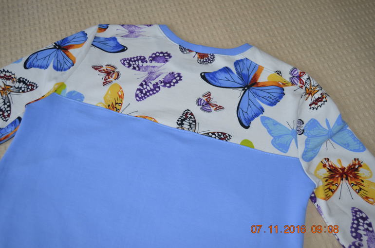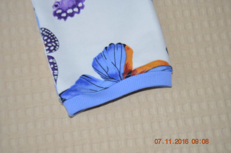Отстрочила гульфик, но его плохо видно на этом футере. Вообще ткань не очень понравилась, на изнанке явная петля ПЭ ((