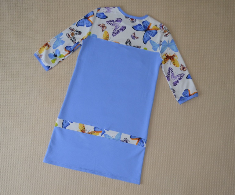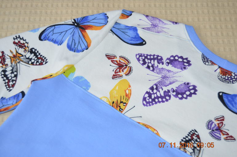 Решение было принято накануне вечером, В запасе было меньше суток времени и два отреза ткани по 0,5 м (футер петля бабочки и однотонный компаньон + кашкорсе на горловину, манжеты). Выкройка из Бурды 9/2016 модель 125. На свой 46-48 русский взяла 42 бурдовский, оказался огромным!!! пришлось платье ушивать с боков на 8 см.