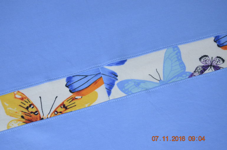 Край подола обработала оверлоком и подвернула, прострочила одной иглой.