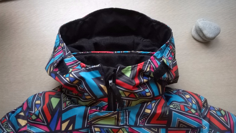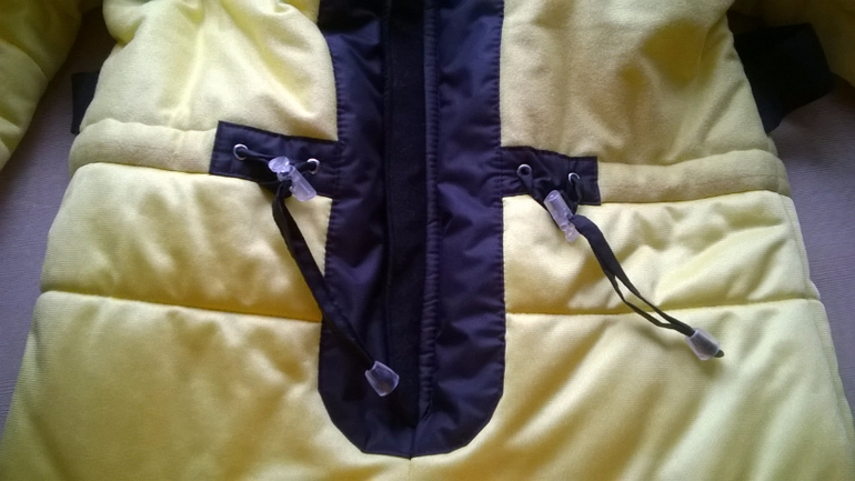 используемые материалы: мембрана графичная и яркая ( 2 метра - остался небольшой кусочек), мембрана черная, каризма желтая и черная, подкладочная фольгированная, молнии витые водонепроницаемые на карманах , центральная витая обычная, резинка черная и черная с латексными прожилками на низки штанин, лента велкро широкая, светоотражайка лента, стопора и концевики, нитки черные и желтые, утеплитель альполюкс 200... извела остаток.