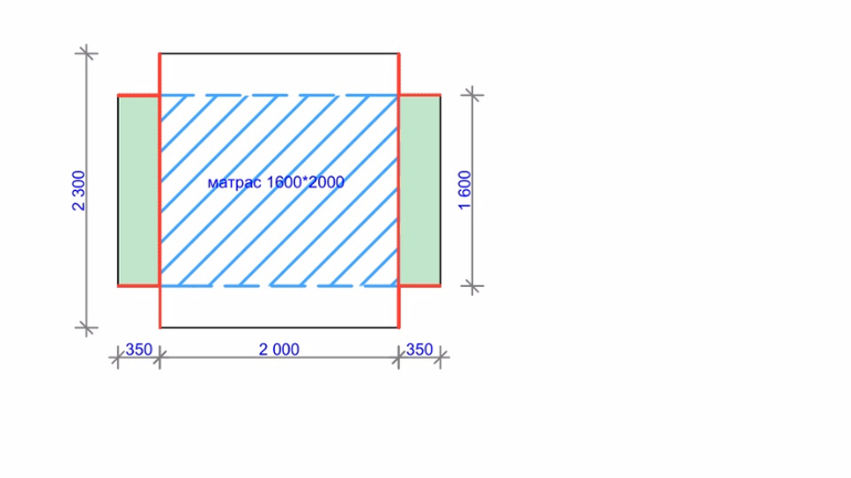 1)Это исходные данные. Матрас и припуски на боковину и резинку по 35 см с каждой стороны.