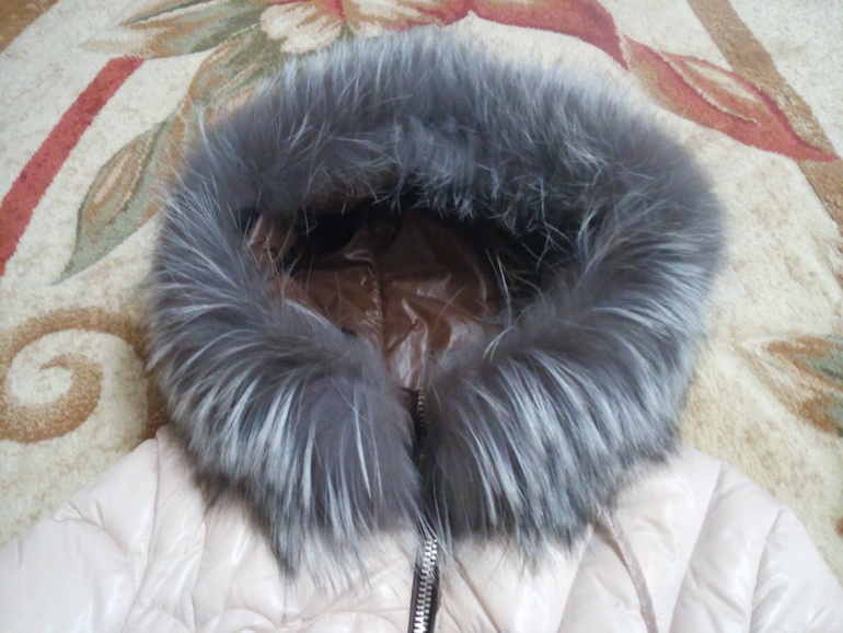 . Капюшон втачной, с большим меховым отворотом. Т.е., как я поняла, стойка капюшона по высоте в 2 раза больше, чем надо, и она заворачивается наружу, как на водолазке. И центральная молния в куртке на всю длину этой длинной стойки.