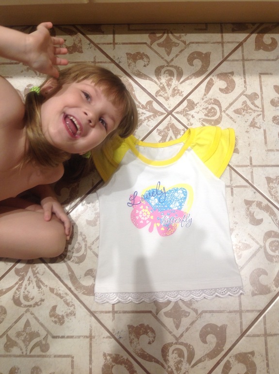 Интерлок, на отделке рибана, на полочке термотрансфер бабочка.