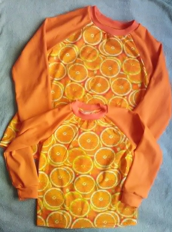 Апельсины кулирка, компаньон интерлок. Сшиты на машинке, горловина закрыта бейкой