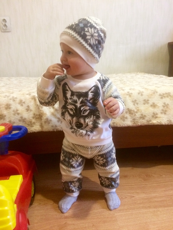 Шьем детямУ нас похолодало, да и вырос сын из всего. По этому поводу сшила костюмчик из микрофлиса. Полочка - белый поларфлис с термотрансфером.