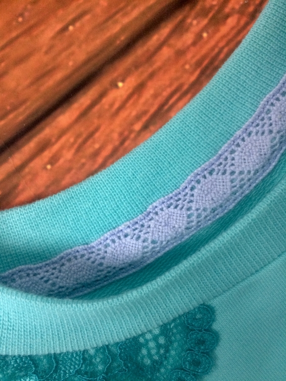 Нереально красиво! Мне этот цвет очень нравится, а тут так все в тон четко подобрано. И очень понравилось, как Вы кружевом шов горловины закрыли.