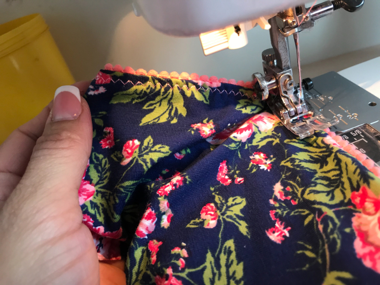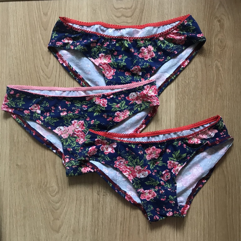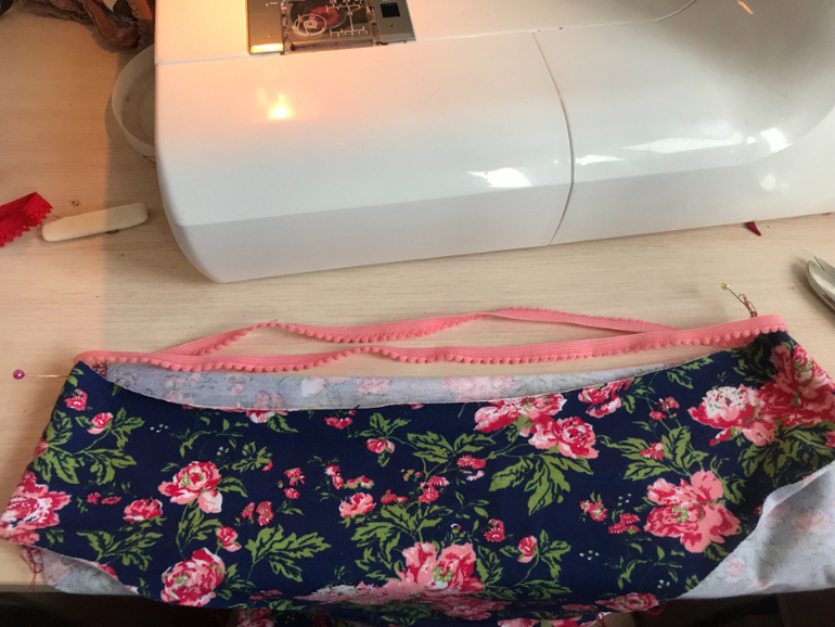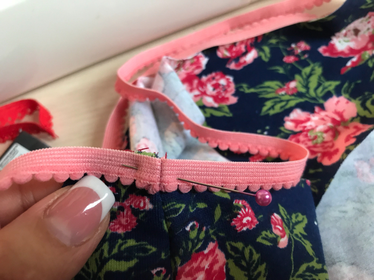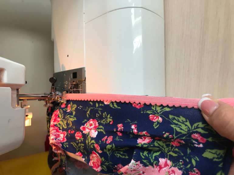 Пришиваем резинку ближе к зубчикам. Край резинки совпадает с краем трусиков или немного выступает за него
