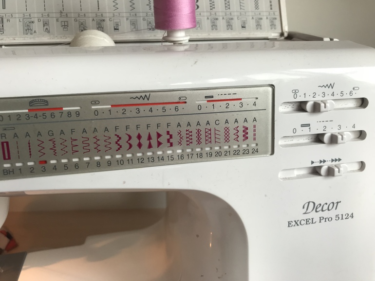 Отмеряем резинку на себе с учетом что при пришивании чуточку потянется. Выставляем строчку на прирывистый зиг-заг, ширина побольше, шаг нулевой. Сшиваем резинку в кольцо.