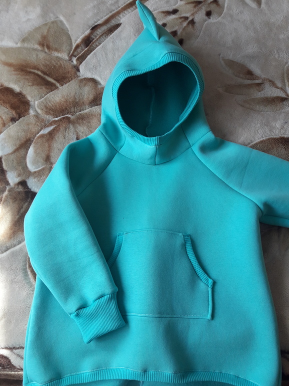Шьем детямУвидела на просторах интернета МК по пошиву вот такой толстовочки.И срочно стало надо сшить такую). Решила шить из 3 нитки с начесом, а т.к. не сезон для нее, выбора особо нет по расцветкам.Достался мне последний кусочек нежнейшего цвета Тиффани 0.6 м. За основу выкройки взяла выкройку знаменитого комбеза в горох из Отто, дальше действовала по МК.