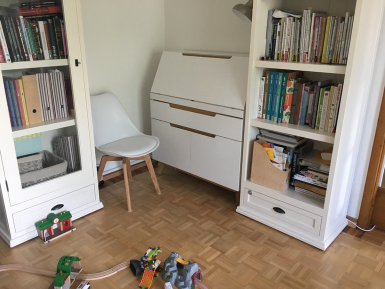 Главное желание было, чтобы место было аккуратным и машинки не бросались в глаза. Так появилась вот такая идея: