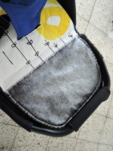 Коляска Britax smile, строила выкройку сама. Ткань обеих разноцветная - это плотный хлопок из икеи, обратная сторона флис, флизелин для мягкости, место под обувь из плащевки. Для крепления - прорези под ремни, резинки в уголках вверху и резинка по низу. Сложнее всего мне дались именно прорези под ремни, я раньше почти ничего такого не делала, поэтому получились кособокие. В остальном довольна проделанной работой))