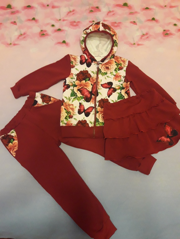 Шьем детямВ общем все просто), пригласили на др к девочке на 2 годика.Появился повод что-нибудь сшить😊Футер с бабочками лежал клочок, хватило на полочки и спинку.Для рукавов взяла футер 50 см.Пока его весь не извела-не успокоилась😂Выкройка толстовки со Шкатулки, штанишки -на основн выкройке лосин из Отто 4/2014, расширила,сделала швы по бокам и карманы.Юбочка сшита "на глазок"