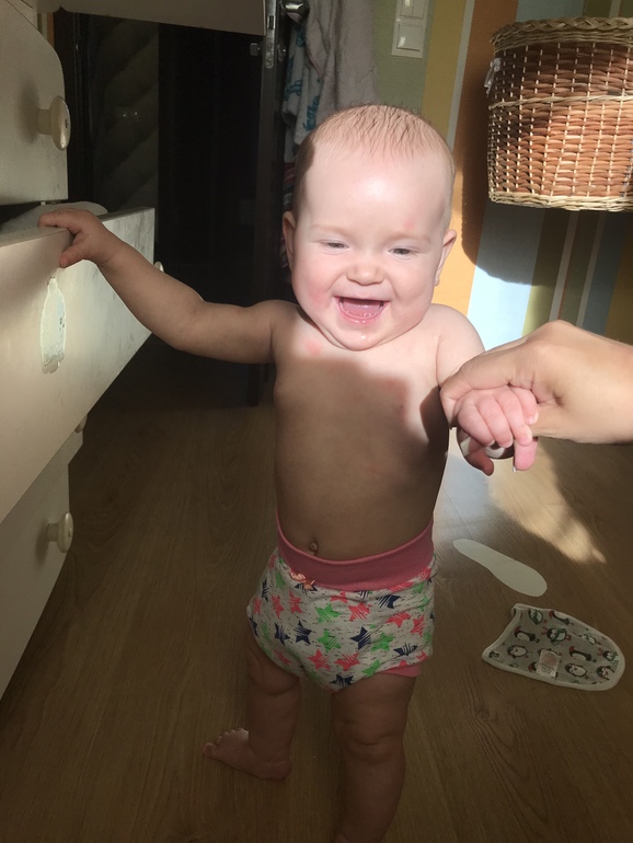 Принцесса боягузка)) сын резвее был в ее возрасте, а она все боится. Правда у сына не было братика такого, который лезет постоянно😏