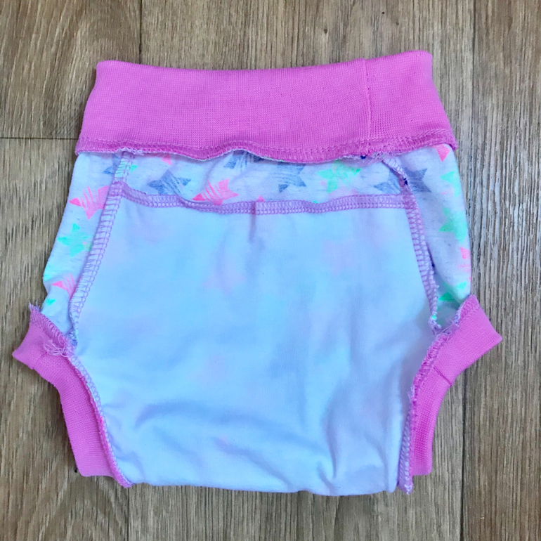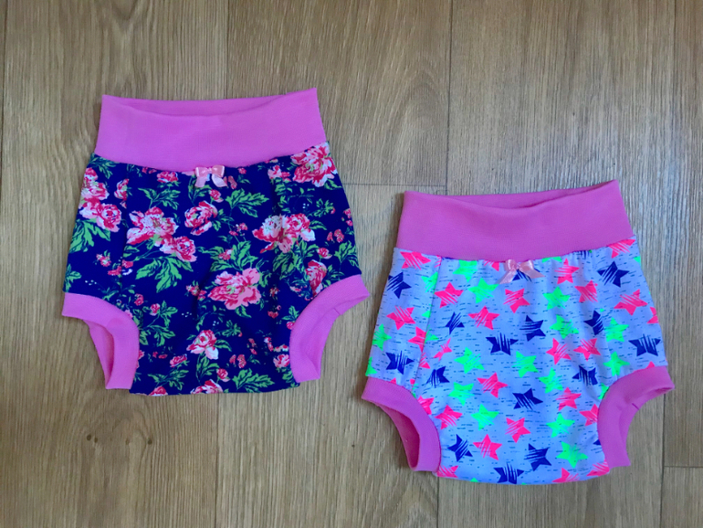 Шьем детямЖГотовимся потихоньку к лету, морю. Пошились такие трусики с карманом. Планирую носить их этим летом как полноценный подгузник со вкладышем побольше, а позже в качестве тренеровочных трусиков с тонким вкладышем, по-этому размер такой внушительный)) стрейч-кулир, рибанп. Выкройка на глазок.