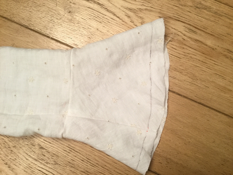 Долго думала , как обработать рукава , чтобы было гармонично с низом , в итоге вышила на машинке декоративным швом и вырезала по контуру