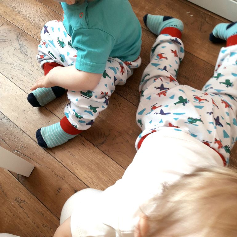 У меня детей меньше, но все тоже самое. Только малыша таскаю в левой руке. А правой ногой снимаю с него среднего, который постоянно лезет потискать/покатать/попрыгать/подергать брата за ноги.