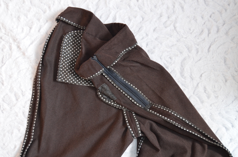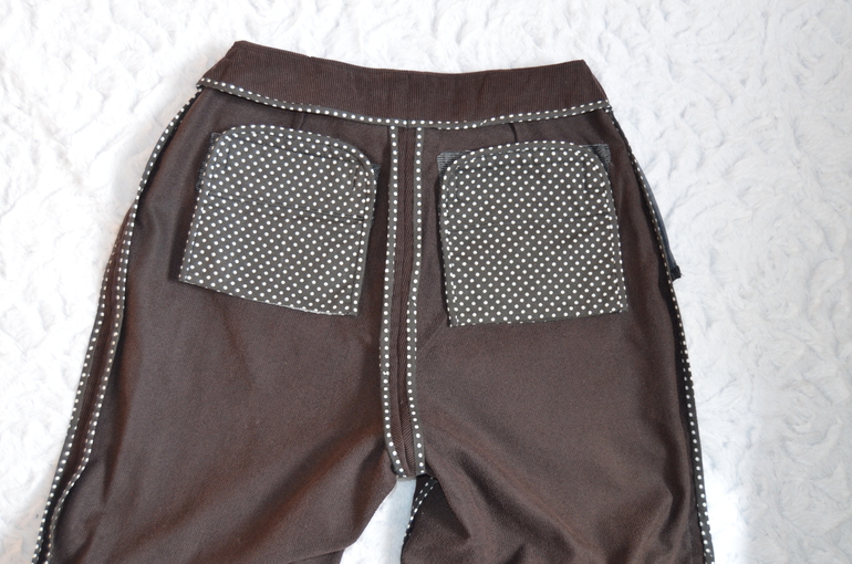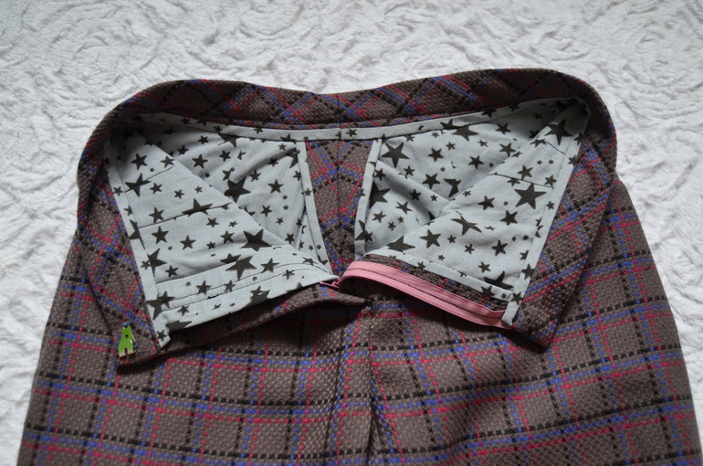 Как вы все уже знаете, у этих брюк есть одна замечательная встроенная функция сохранения тепла, реализованная в виде веселенькой подкладки, обработанной методом гонконг. Ну что ж, теперь я хотя бы удовлетворила свой зуд, знаю, что это такое и самое главное, убедилась в том, что выкройка должна быть проверенной и без сюрпризов. Но, в общем и целом, мне понравилось. Когда-нибудь сошью еще платье этим способом.