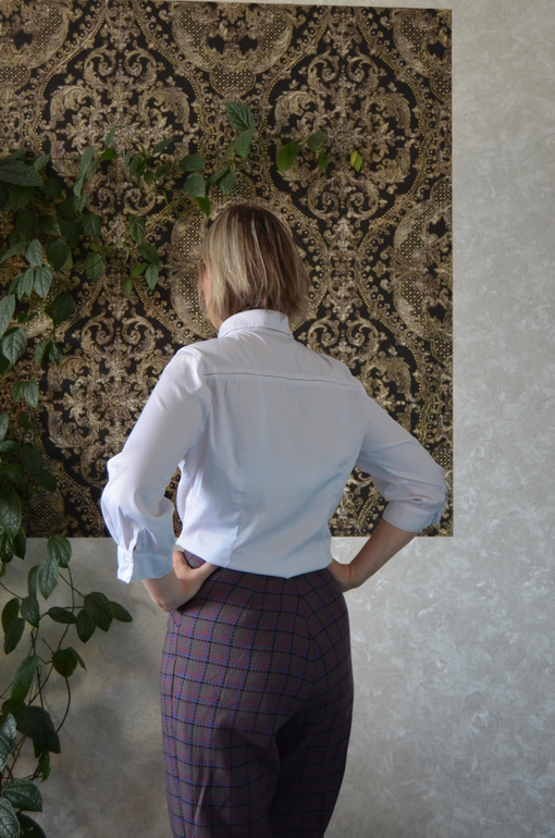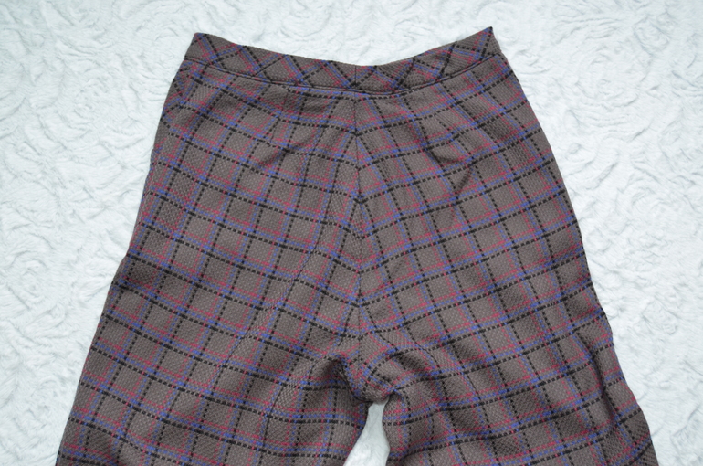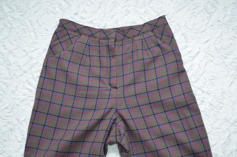 Почему-то в этом отношении я всегда ленюсь и первая примерка откладывается на неопределенное время. Вот и сейчас я вспомнила об этом очень ответственном моменте когда брюки были почти полностью собраны. Я засунула голые ноги в штанины, встала перед зеркалом и поняла, что что-то тут не то. Лихо крутанулась и от этого брюки в ужасе устремились по направлению к коленям, клетки перестали радовать и захотелось разрыдаться.