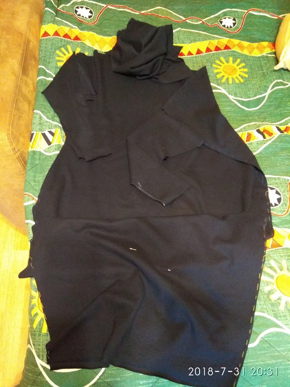 Верх каким только не был))) и с манжетами, и воротник-хомут был, а низ вообще должен был быть разным по уровню, сзади длиннее, спереди короче, но в самый последний момент решили разноуровневость сделать складками)))
