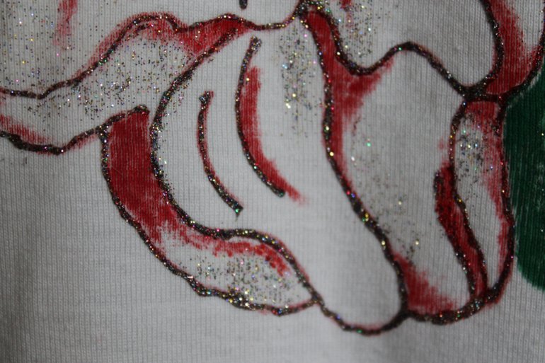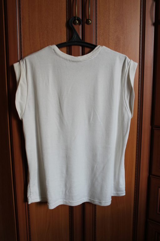 Вот со свежака и начнем. Футболка с рисунком акриловыми красками и маркером по ткани из молочной тонкой рибаны. Выкройка сведена с покупной,даже планки на рукавах сделала,как на готовой. Но готовая из кулирки,и планки держутся заутуженными,а мои ну никак не хотят...оттопыриваются,хоть ты тресни. Наверно,прихвачу потайными стежками.