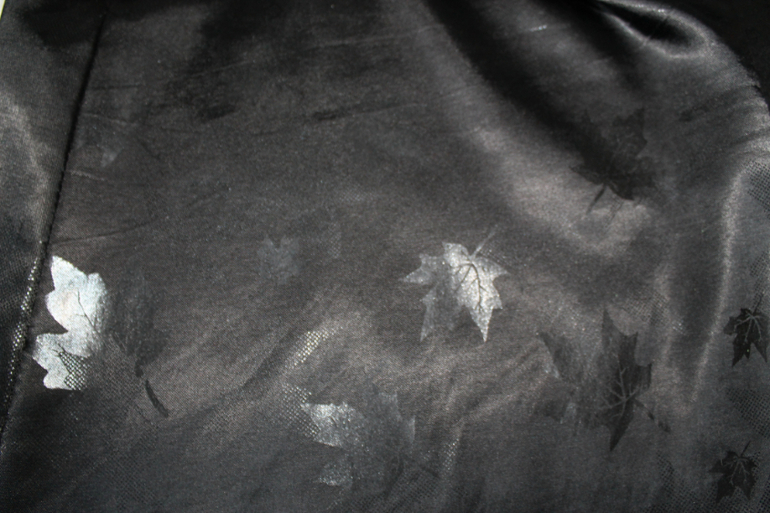 Юбка проще некуда,на основе прямой. Закрыла талиевые вытачки,получился небольшой клеш. Молния в левом боковом шве,не потайная. Пояс с застежкой на пуговичку. Из плательной ткани с кленовыми листьями...мнется безбожно,фиг отутюжишь. На распродаже забрала остаток)))