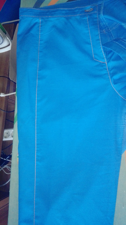 Ну и многострадальные брюки. Выкройка, построенная на себя, по методике "Мюллер и сын". Захотелось мне тогда поизвращаться. Бокового шва нет. Боковая деталь переходит в кокетку задней половинки. Целиком толком так и не сфоткала,большие очень)))