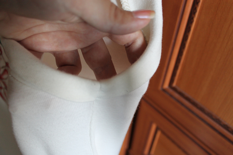 По плечевому шву планка закреплена машинной строчкой,в районе проймы тоже.