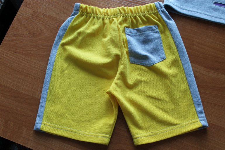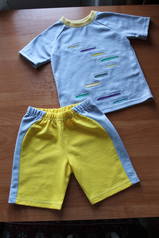 Итак,этот комплект я не дошила в марафон,показываю сейчас. Футболка из интерлока и шорты из пике. Кусок серого изрезала в ноль,на эти шорты осталось на вставочки)
