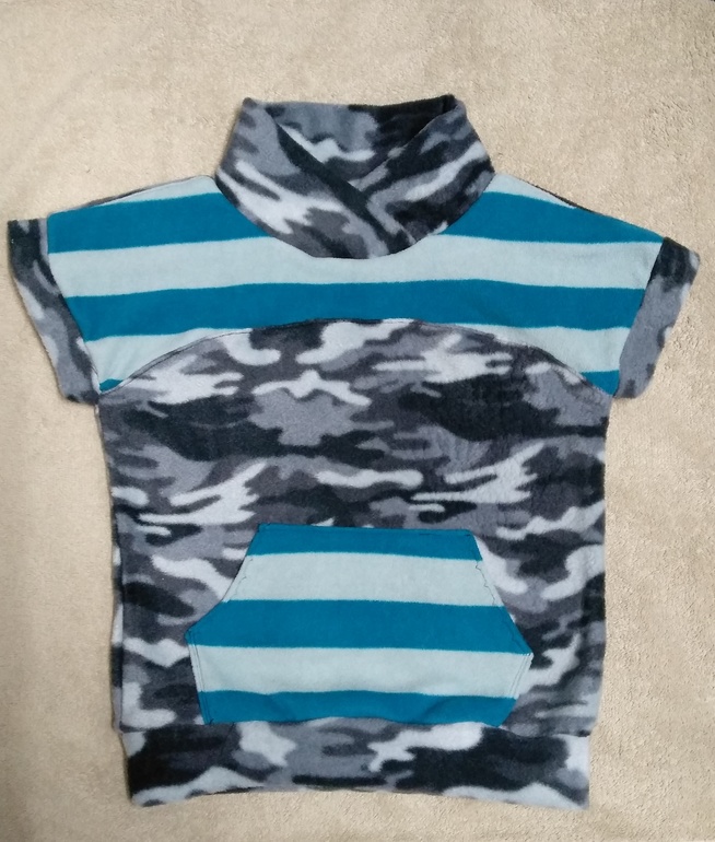 Из кусков флисовая жилетка, которая вызвала бурю критики, что мол это комбинезон на собачку.