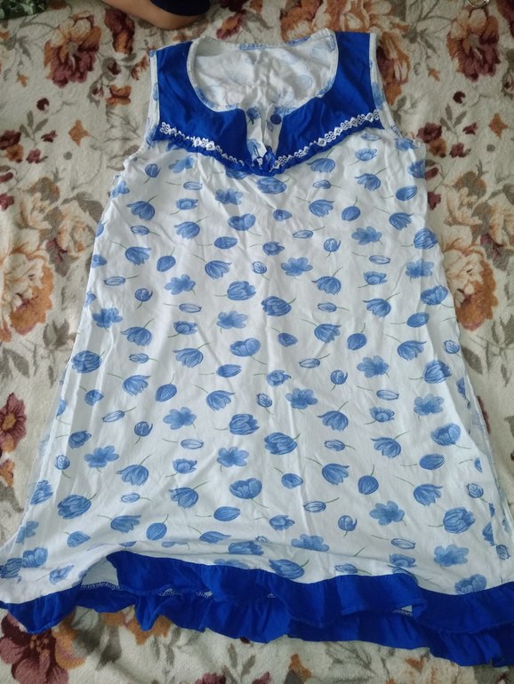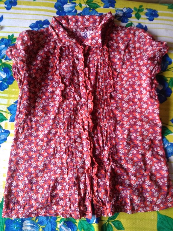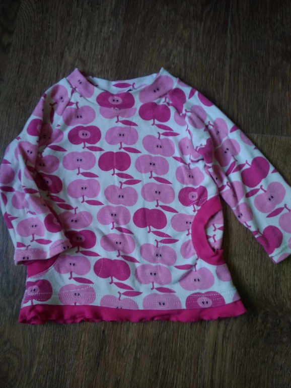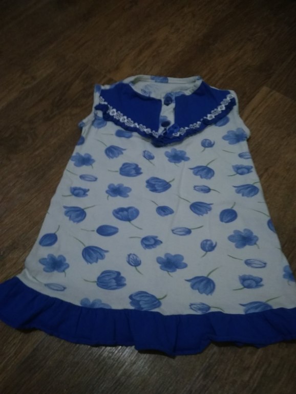 Вот такое платьишко сшилось из подростковой рубашечки, уменьшила до дочкиного размера