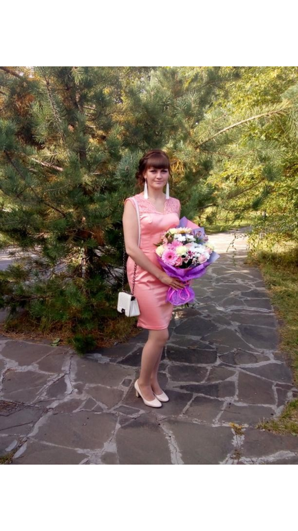 На свадьбу для подружки невесты. Выкройка своя, ткань атлас свадебный, гипюр