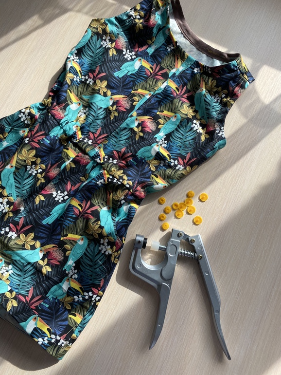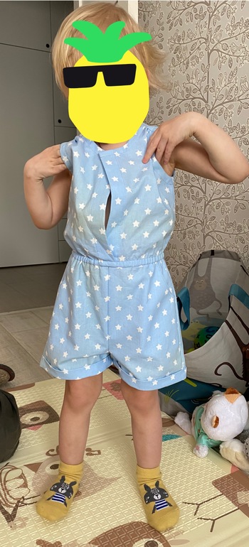 А вот вторая работа, летний комбинезон для дочки 🦜☀️
