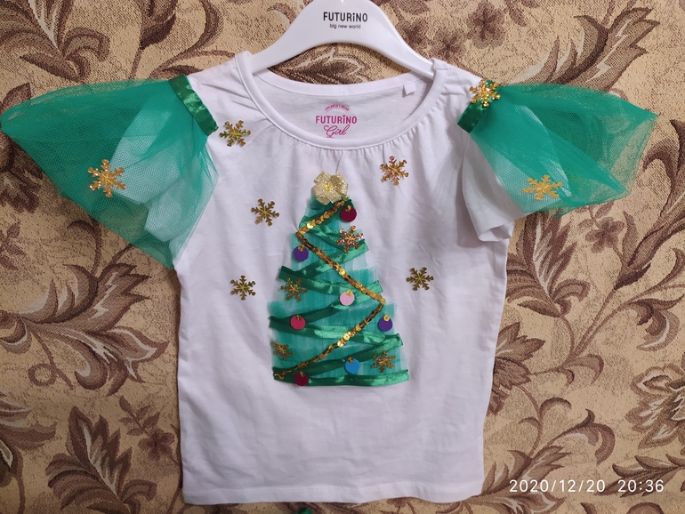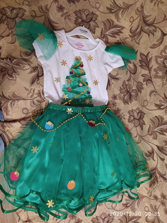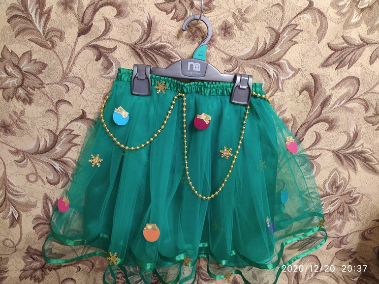 Но конечно же лап мне было мало 🙈 Подруга попросила помощи с костюмом Ёлочки. Ну тут я уже не могла шить в ночь перед праздником, поэтому шила заранее, на выходных по капельке. Конечно же, как всегда не без косяков, но опыт на то и опыт :-) Выкройки не было, юбка просто прямоугольники, собранные на резинку, ткань атлас на нижней юбке, сверху жесткий фатин. Верх: покупная футболка с аппликацией ёлочки и "крылышками" (их ну очень просила мама ёлочки). Украшения все пришиты вручную, чтоб наверняка держалось. Ободок покупной.