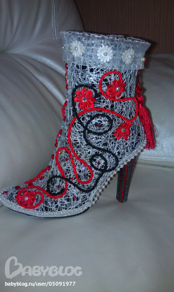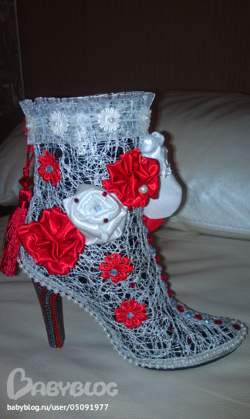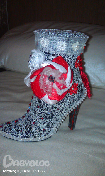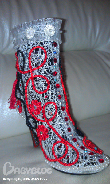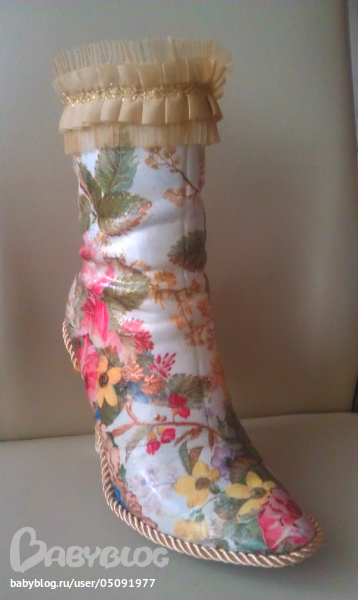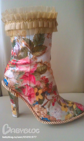 Сделав этот сапожок я поняла что перегрузила его цветами, поэтому вме цветы были отпороты и вот что вышла...девочки понравилось....